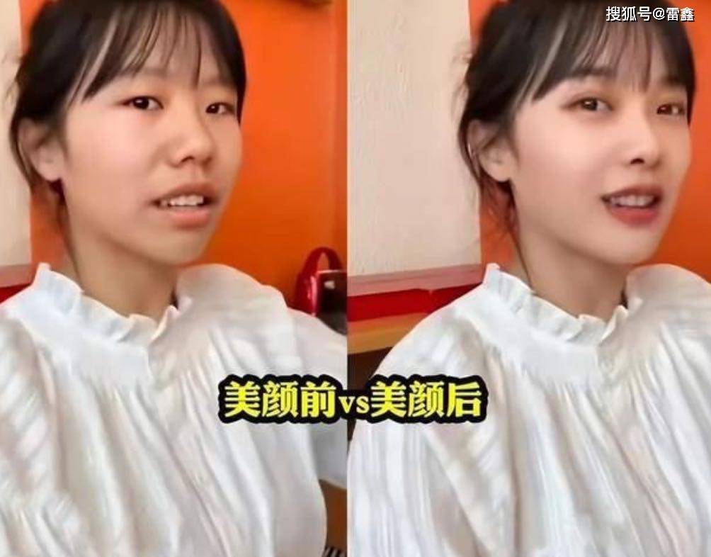 鉴于此,网民还将黄同学美颜前后的照片进行了对比,果然是差距很大