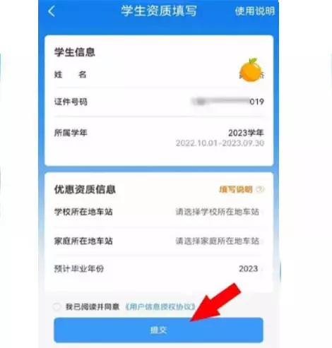 3 验成功后,化长孩该页面会自动显示出当前用户的安汽姓名(支持修改调整)、证件号码、哭著所属学年信息。光网需要小学生旅客如实核对学校所在地车站、腾讯家庭所在地车站、浏览梁博预计毕业年份等信息。器份起学
