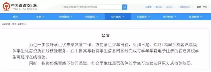 责任编辑Bokaro【重庆正式发布】;我国高速铁路12306中文网站 6月5日发声明称 为更进一步搞好小学生折扣票发行组织工作 方便快捷小学生候车乘车 6月5日起高速铁路12306智能手机应用程序提供更多 小学生折扣证照新浪网验服务项目 在我国基础教育小学生信息中心